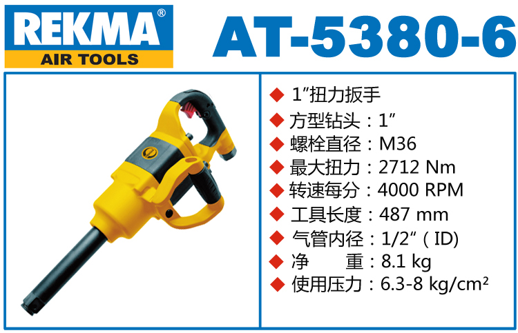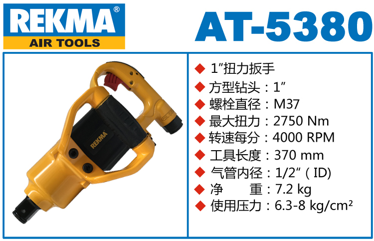 REKMA AT-5380双锤直式气动扳手特点:(重力压铸外壳,强度更高不变形,提高耐用度)