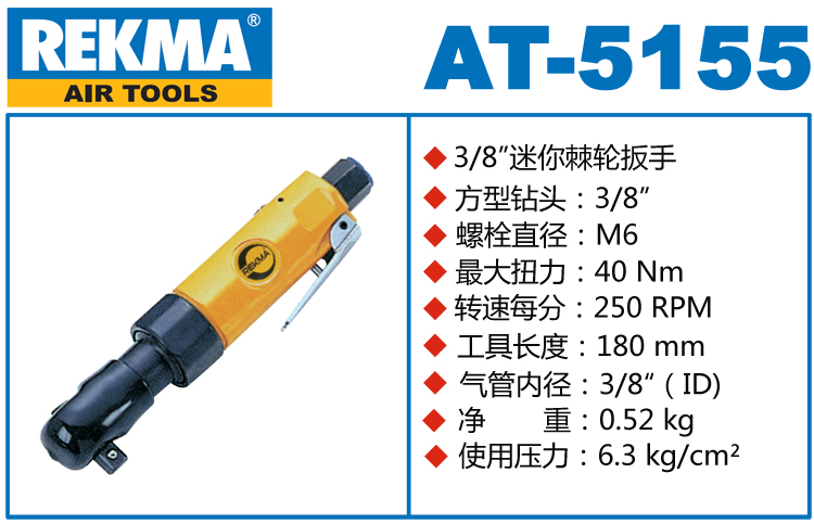REKMA AT-5155气动棘轮扳手特点:(重力压铸外壳,强度更高不变形,提高耐用度)