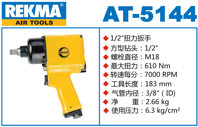 REKMA AT-5144锐克马M18小风炮特点:(重力压铸外壳,强度更高不变形,提高耐用度)