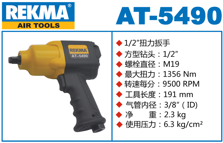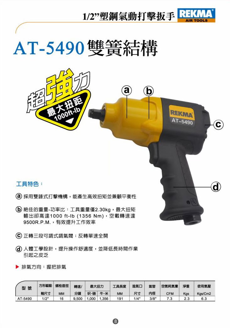 REKMA AT-5490风动扳手特点:(塑钢外壳,强度更高不变形,提高耐用度)