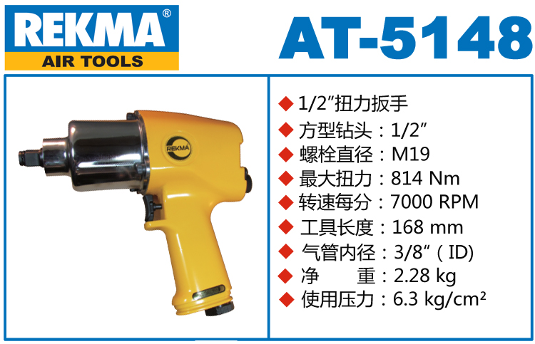 REKMA AT-5148双锤气动扳手特点:(重力压铸外壳,强度更高不变形,提高耐用度)