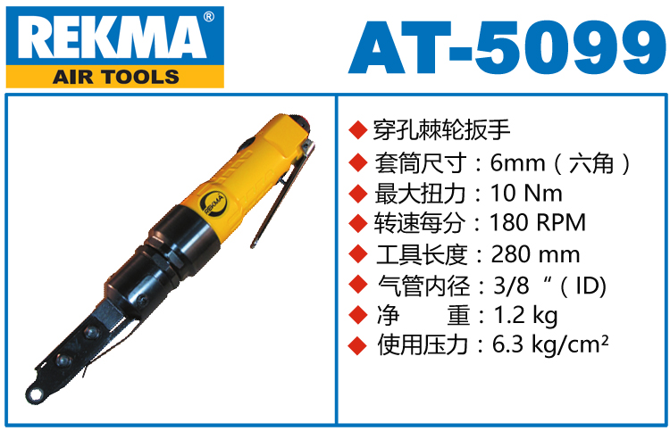 REKMA AT-5102穿孔式气动棘轮扳手特点:(重力压铸外壳,强度更高不变形,提高耐用度)