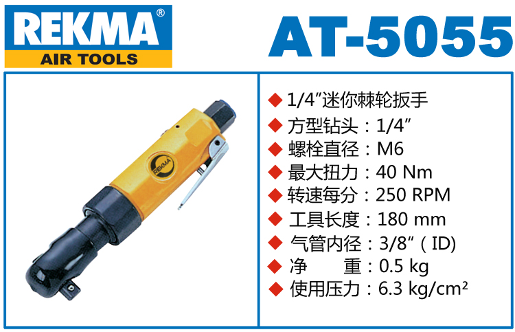 REKMA AT-5055迷你气动棘轮扳手特点:(重力压铸外壳,强度更高不变形,提高耐用度)