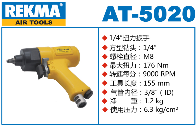REKMA AT-5020风动扳手特点:(重力压铸外壳,强度更高不变形,提高耐用度)