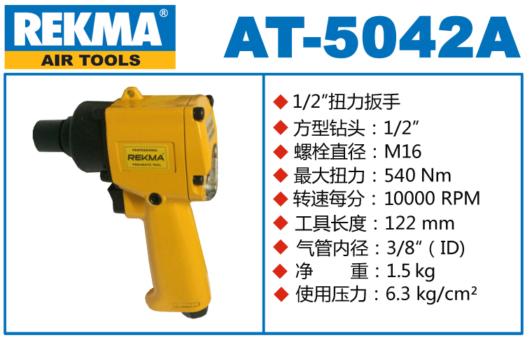 REKMA AT-5042A轻型气动扳手特点:(重力压铸外壳,强度更高不变形,提高耐用度)