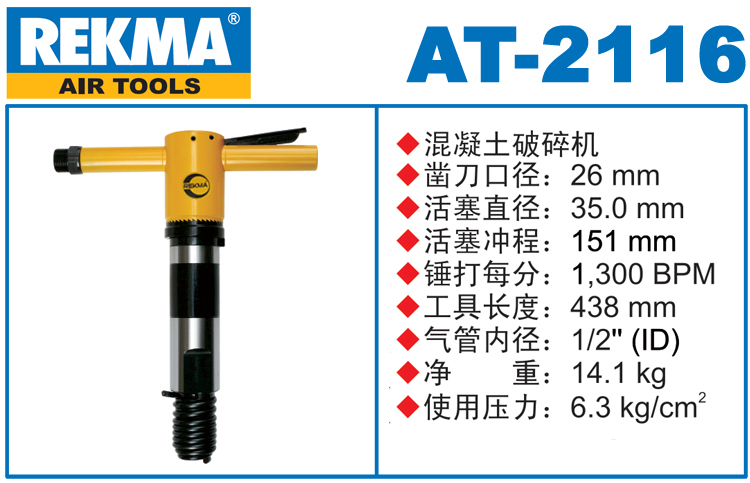 REKMA AT-2116进口风镐破碎机特点: