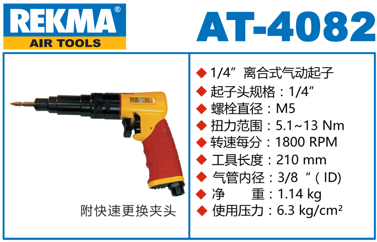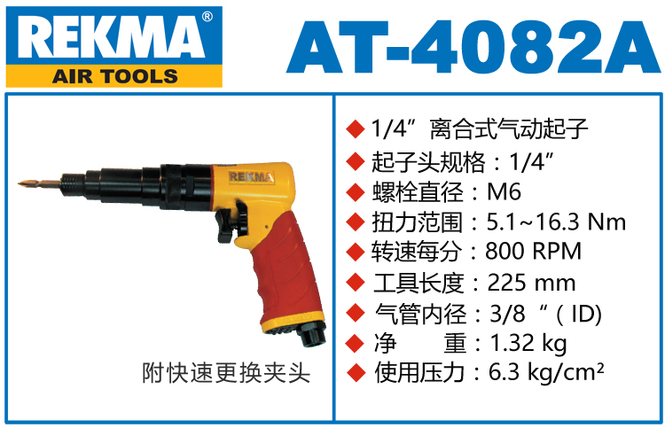 REKMA AT-4082A离合式气动起子特点: