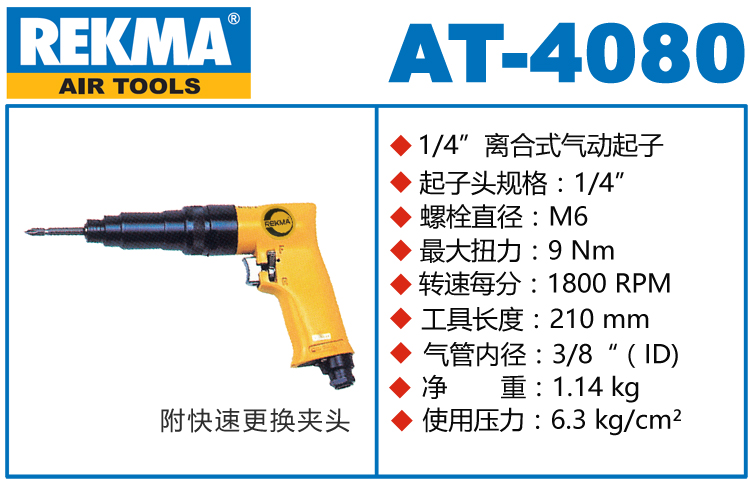 REKMA AT-4080离合式气动螺丝刀特点: