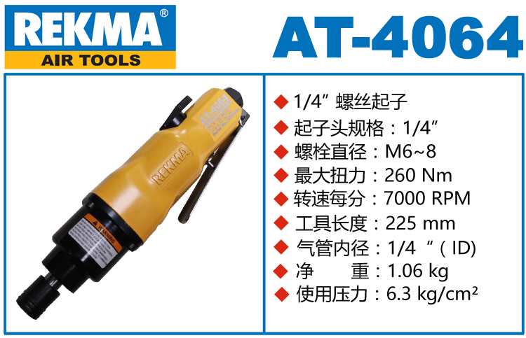 REKMA AT-4064大功率风批特点:(重力压铸外壳,强度更高不变形,提高耐用度)