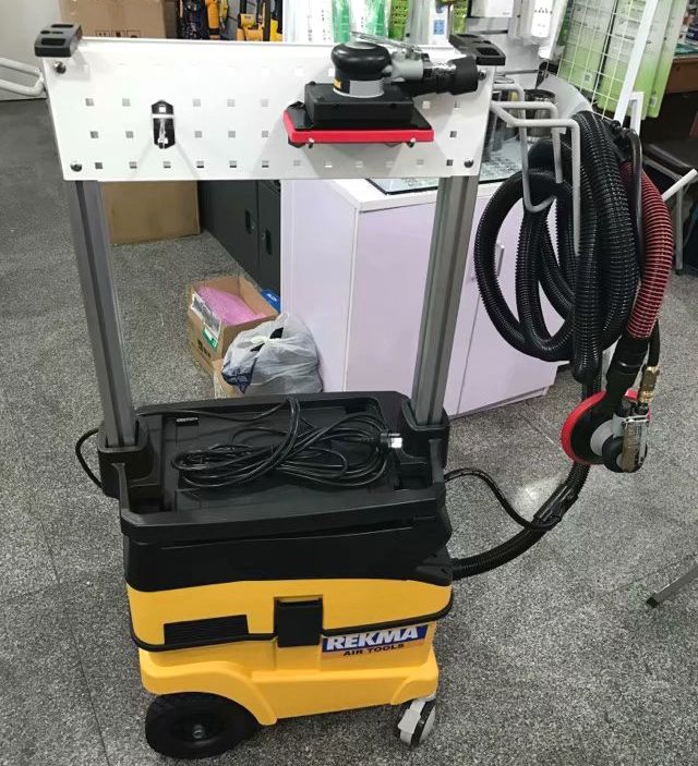 2、电动集尘机可以调节吸尘力大小,有两个专业的高流量工业吸尘电机,可长时间保持高流量真空吸力,,可以确保两台气动砂纸研磨机同时打磨时有非常好的除尘效果